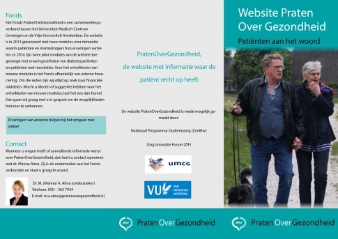 PratenOverGezondheid heeft een nieuwe informatiefolder. Deze folder geeft achtergrondinformatie over het doel en de werkwijze van PratenOverGezondheid. Bekijk de folder hier.