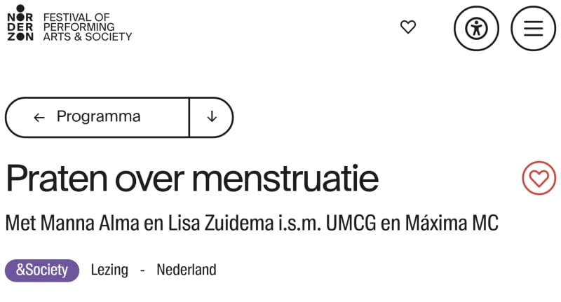 Menstruatie is doodgewoon, maar praten we er ook zo over? In deze interactieve bijeenkomst gaan we het gesprek aan over schaamte, ervaringen en stilte rondom de cyclus. Met persoonlijke verhalen, wetenschappelijk onderzoek en indrukwekkend ontwerp proberen we het taboe te doorbreken – openhartig, kleurrijk en zonder omwegen.